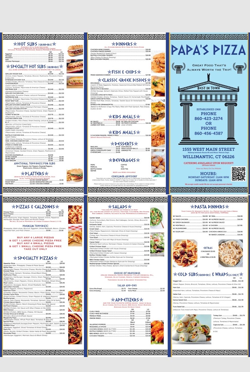 Papa's Pizza in Willimantic offers a diverse and mouthwatering menu that caters to a variety of tastes and preferences. Their selection of Hot Subs is a standout, with options like the Sm Athenian Chix Sub and Sm Buff Chix Sub available for smaller appetites, priced affordably. For larger subs, the Lg Athenian Chix Sub and Lg Cheeseburger Sub are perfect for those craving more substantial portions. The Fish & Chips is another notable dish, featuring the crispy and tender Haddock Dinner.
